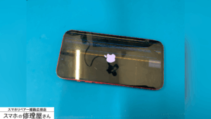 iPhoneを落とした衝撃で画面上部に穴が空いた…とのことでお持ちいただきました。